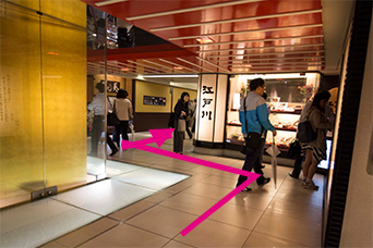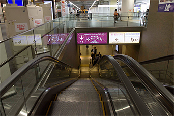 みやこみちへのエスカレーターを下ります。